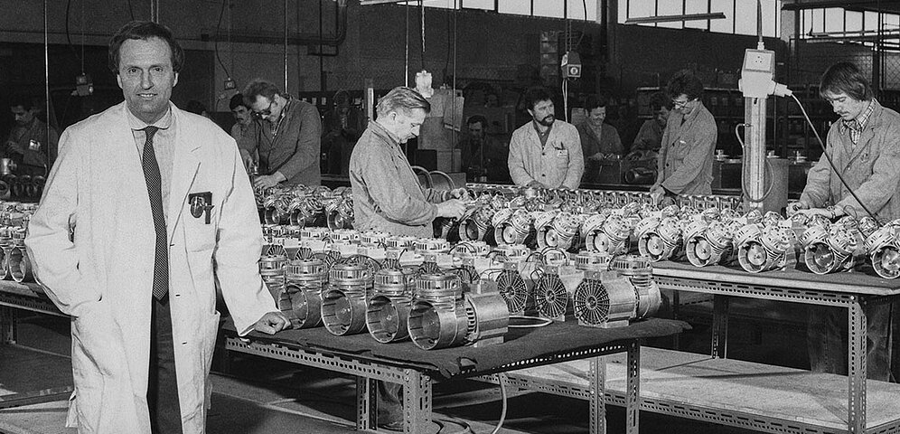 Doch von vorn: Die allerersten KNF Pumpen werden zunächst an Labore verkauft. Und auch wenn die Umsätze dadurch stetig steigen, so ist das Marktsegment doch zu klein, um KNF – nach der Ära als Maschinenfabrik und Zylinderschleiferei – eine langfristige wirtschaftliche Basis zu bieten. Erich Becker setzt deshalb auf die gezielte Entwicklung von Pumpen, die die Bedürfnisse der Industrie erfüllen: noch bessere Leistung, noch längere Lebensdauer und höhere Sicherheit. Doch die Vorbehalte gegenüber den Membranpumpen bleiben. Bis 1972.
