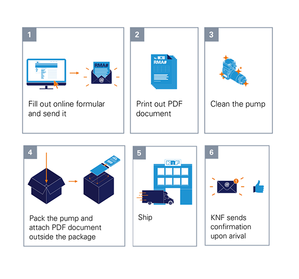 5. Package the pump securely for shipment. Attach the two documents to the outside of the package in a packing slip pocket.