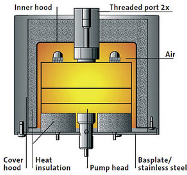 Process engineering and chemical analysis both depend on the ability to transfer hot gases and vapors. KNF diaphragm pumps with temperature-resistant components -- able to withstand up to 460 °F (240 °C) -- are ready to handle these challenges. However, temperature resistance alone is not enough in many applications. In these cases, it is equally important for the temperature of the medium to remain constant during the transfer process. KNF diaphragm gas pumps with insulated temperature-resistant, and heated heads provide the solution to this problem.