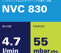 KNF NVC 830はシングルヘッドとデュアルヘッドの2種類をご用意しています。機種により最大流量4.7 l/min、究極真空度55 mbar (abs.)を達成します。プロジェクトベースでヘッド、ダイアフラム、バルブに異なる材質を採用し化学的適合性を確保できます。お客様は固定設定値用のシンプルな2線式接続と可変設定値制御用の高度な4線式接続から選択可能です。サイレンサーなどの追加アクセサリーにより特定の要件への適応性がさらに高まります。