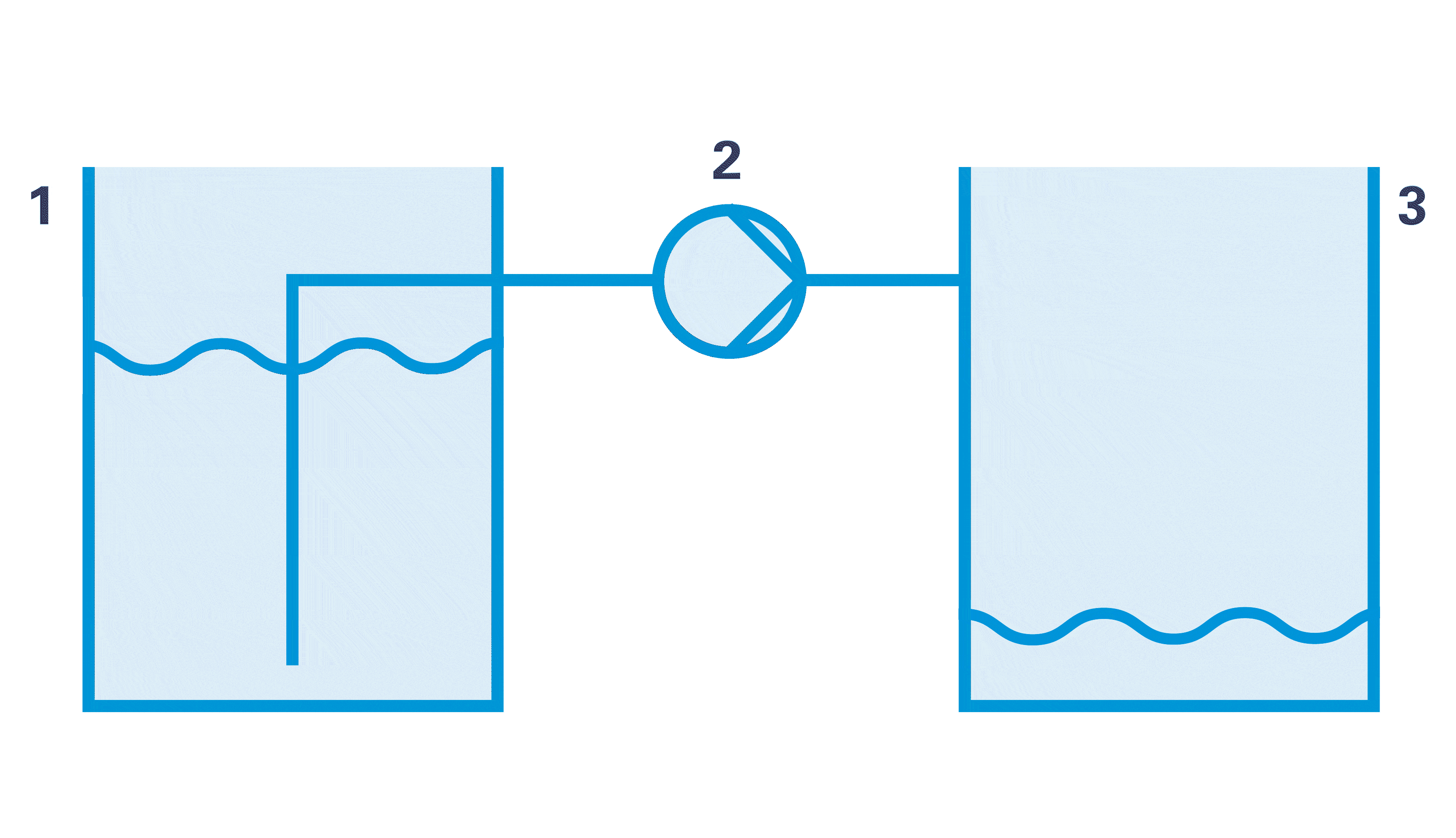 In pressure-over-liquid transfer systems, the pump’s operation is not directly linked to the liquid being moved. The pressure applied to transfer the liquid can vary. This can result in less consistent flow rates and less precise flow compared to direct-liquid transfer. One diaphragm pump or swing piston pump can supply multiple lines. To regulate the flow and control the pressure, valves and valve control need to be implemented, thus potentially increasing system complexity and maintenance time and costs. As it might take the pump some time to regulate a certain target pressure, pressure control in sub-tanks can be slow. Another downside of pressure-over-liquid system can be lower efficiency since the system needs to first compress air to then move the liquid. Depending on the system design, potential friction losses can further reduce system efficiency.